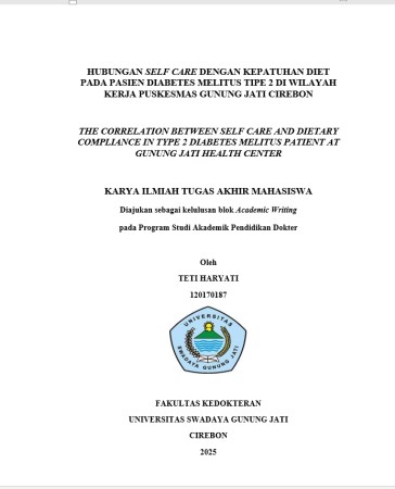 HUBUNGAN SELF CARE DENGAN KEPATUHAN DIET PADA PASIEN DIABETES MELITUS TIPE 2 DI WILAYAH KERJA PUSKESMAS GUNUNG JATI CIREBON